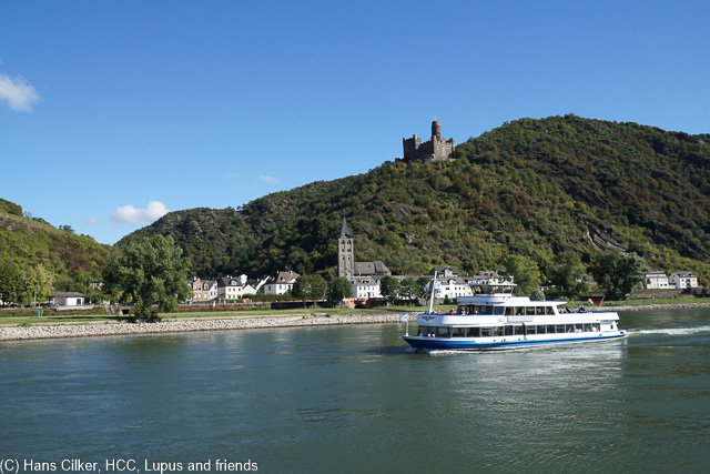 Auf dem Schiff dann Entspannung pur, ruhig zieht die Landschaft an uns vorbei, Burg um Burg kommt ins Bild und Schiffe sind reichlich unterwegs, der Wasserstand erbärmlich, so niedrig haben wir den noch nie gesehen.