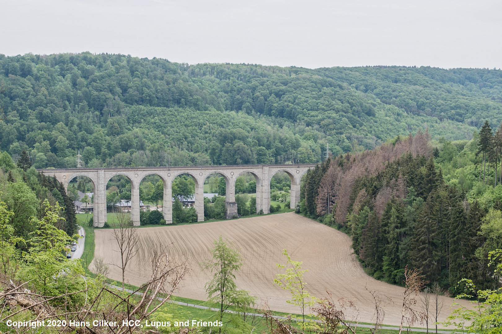 Dann der Aussichtspunkt auf den Viadukt, erst mal schauen, na ja, wenn die Blätter noch dichter werden…also auf das Geländer gestiegen, jetzt sehe ich was, haben die bestimmt vergessen frei zu schneiden, sonst macht der Aussichtsturm ja keinen Sinn.