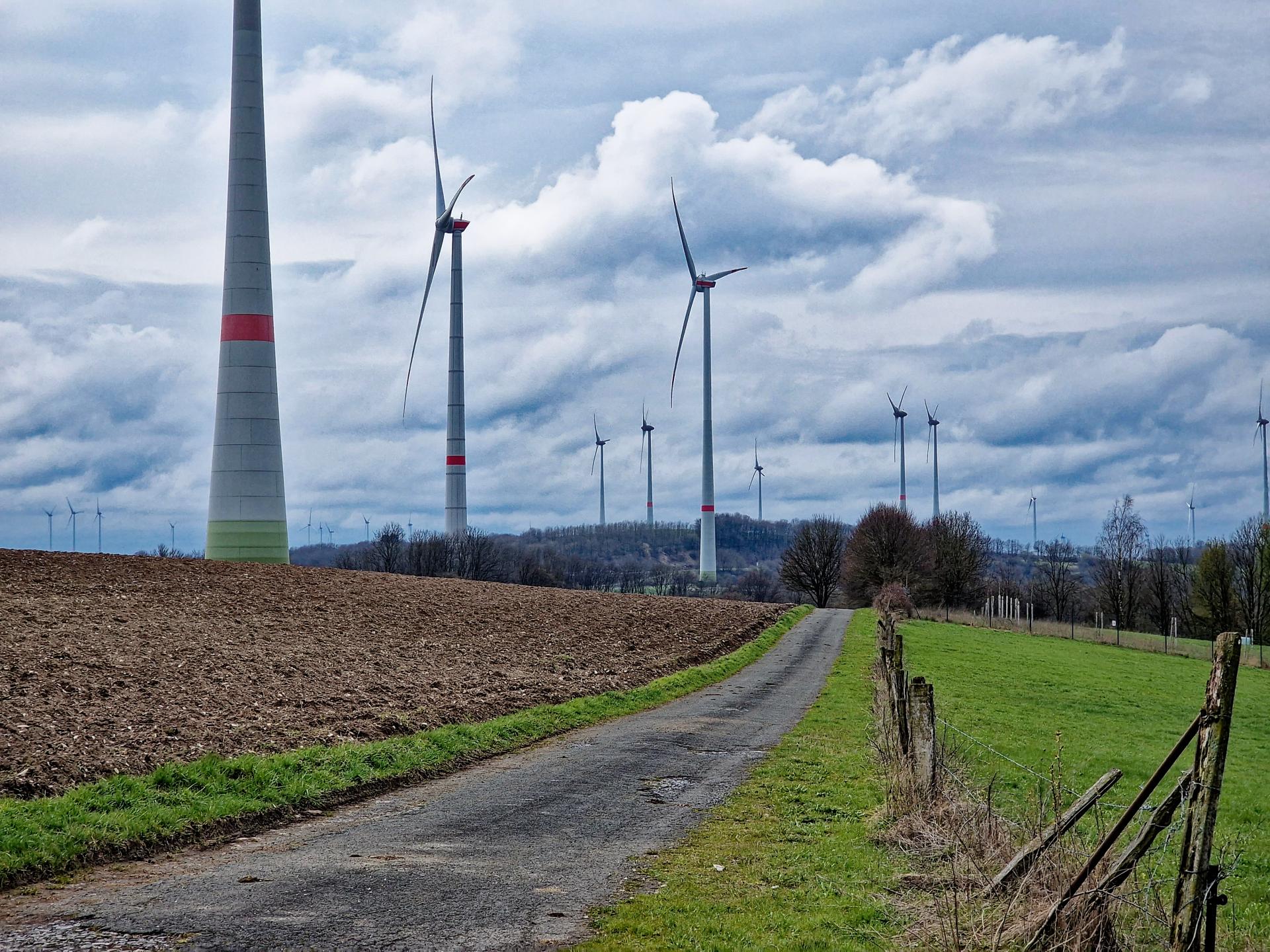 Durch den Windpark entlang der Schießanlage geht es dahin.