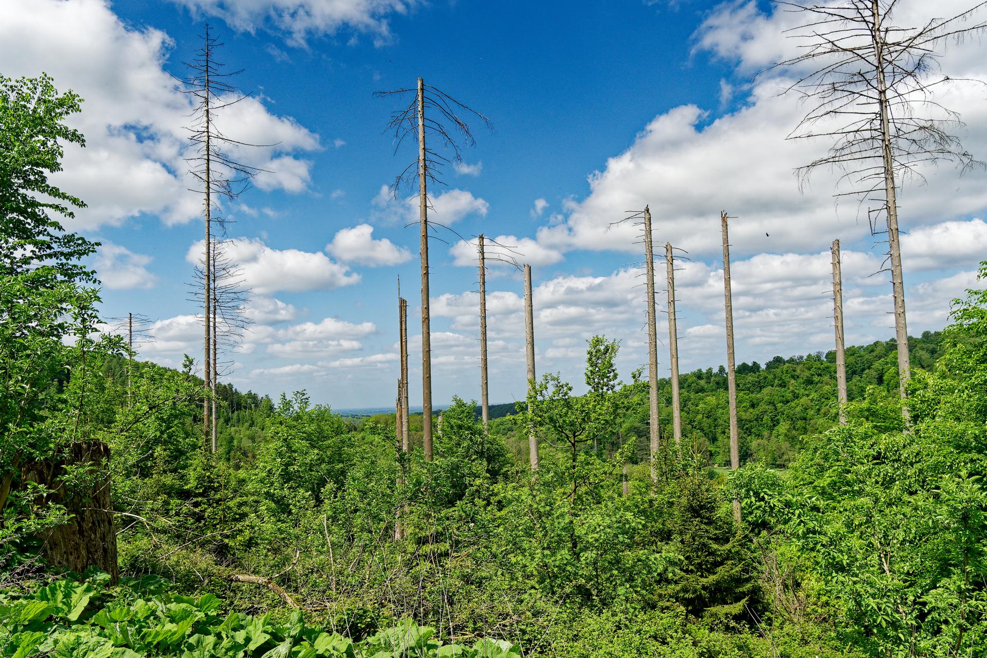 Am Ende des Weges Käferholz, wie überall in der Egge, viel gibt es nicht mehr was der Käfer nicht erledigt hat, er liebt die Fichten.