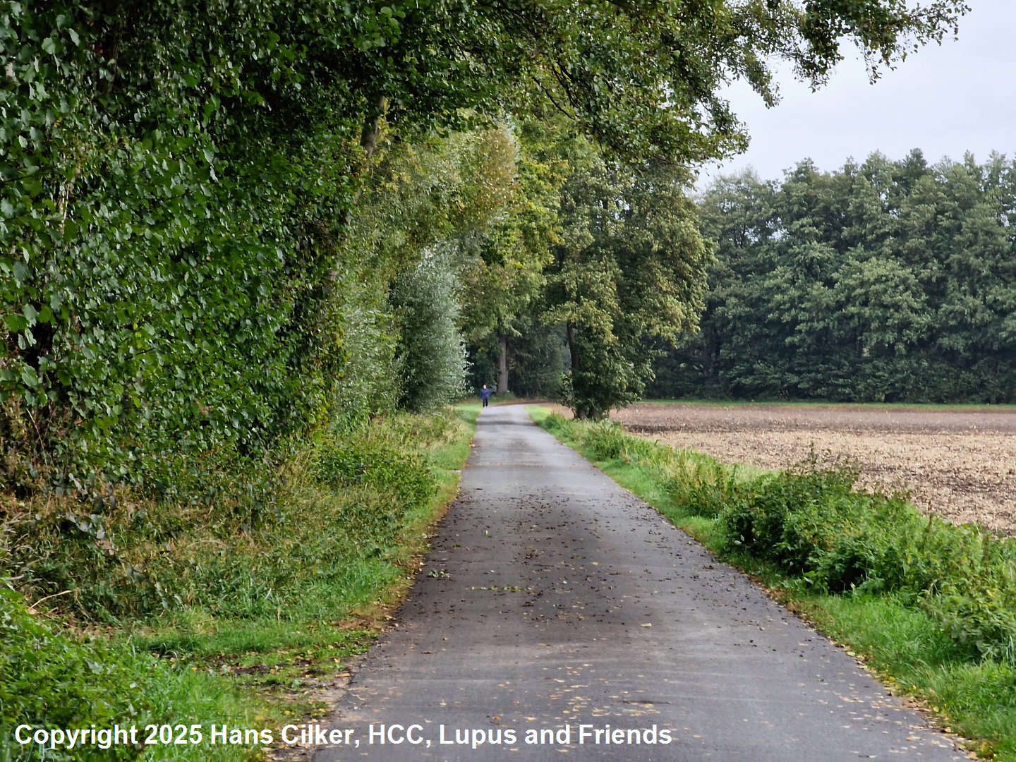 Der Regen hält uns fest im Griff, also Regenpause nutzen und den Furlbach besuchen. Wie ein Tunnel, der befestigte Weg, schon kaputt gefahren von den Windrad Touristen.Ein kleiner Hund ist nicht begeistert….