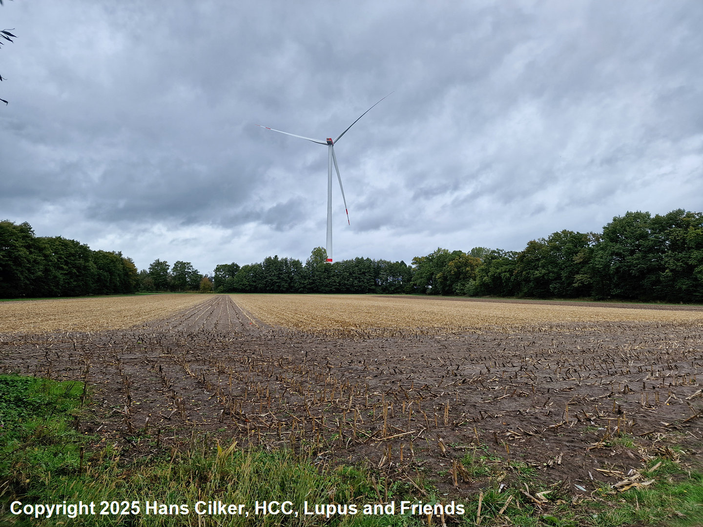 Und ein Windrad +überragt alles, nur drehen tut es sich immer noch nicht…