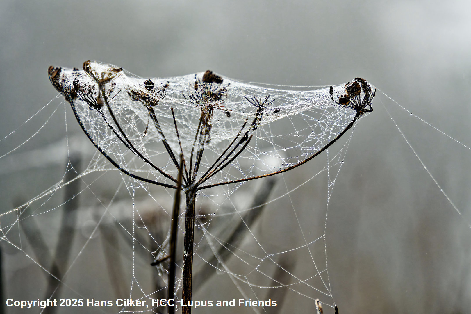 Und auch die Spinne hat es erwischt, alles nass in ihrem Netz…