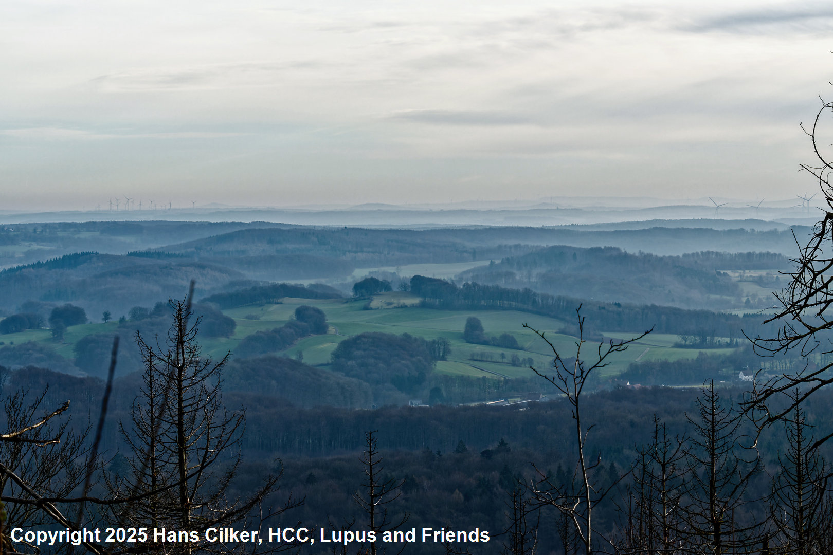Blick tief rüber ins Hessische, davor Grüne Wiesen richtung Emder Höhe.